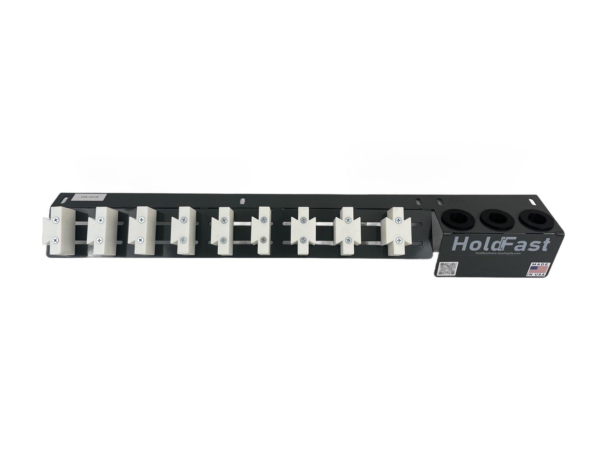 HoldFast, BXA lathe tool racks can hold 3 Morse Taper tailstock tools, and 8-12 quick change tools depending on tool size and brand. Tool racks are fabricated out of 12-gauge (0.1046") steel with an industrial powder coat finish. Quick-change tool holders, and tapered tailstock tool sockets are produced from high quality 3D prints which provide excellent strength, and impact resistance while protecting the precision surfaces of your lathe tools when being stored.